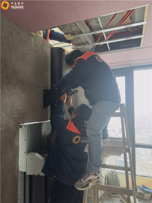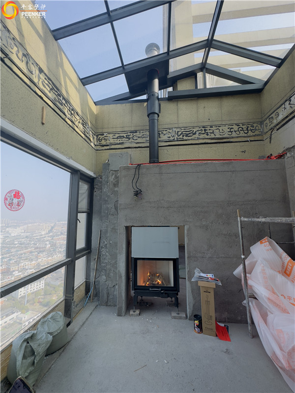 項目介紹:該項目為高層頂樓陽光房,客戶選擇的是丹麥Morso S101-12嵌入式壁爐,是一款提拉式爐門壁爐,嵌入式壁爐需要在水電結(jié)束后入場安裝。該項目由平客壁爐項目部帶隊上門安裝。
